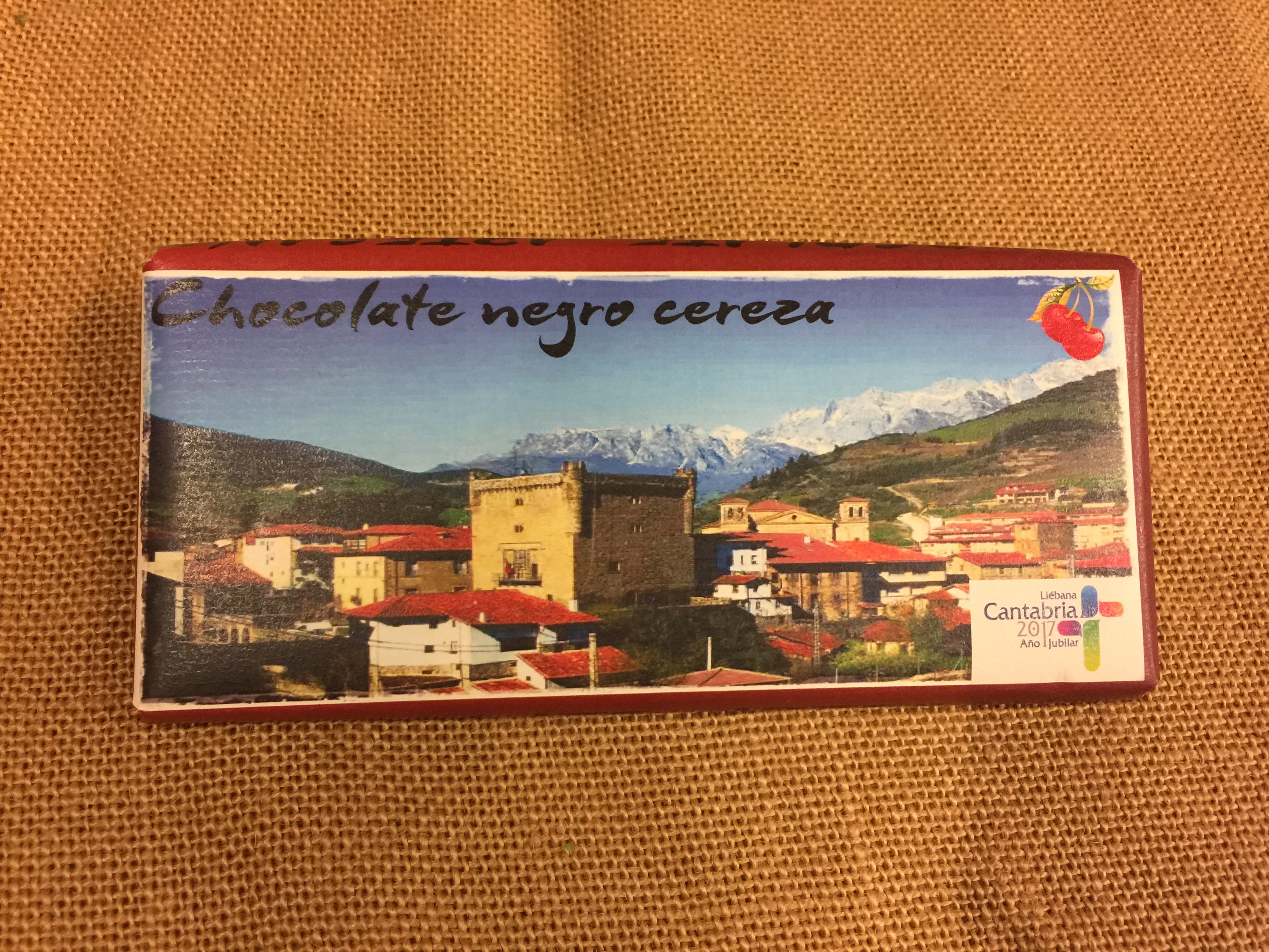 INGREDIENTES:pasta de cacao,azúcar,manteca de cacao,emulgente(lectitina de soja),aromas:cereza y vainilla,cacao 52%